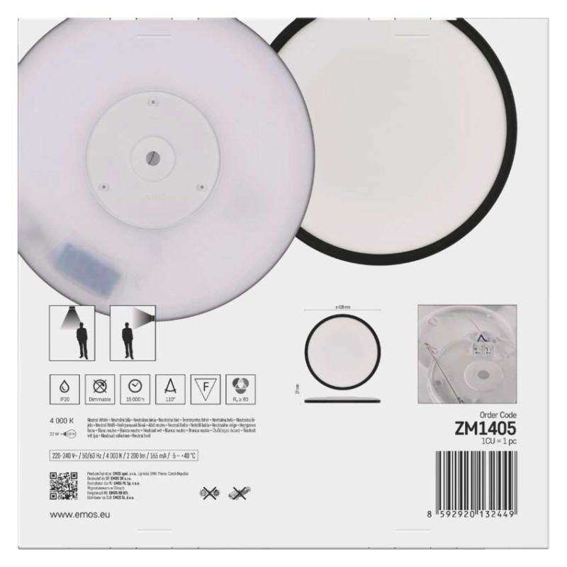 diaľkový ovládač: nie|do chodby a na schodisko: áno|do dielne a garáže: nie|do kancelárie: nie|do kuchyne: áno|do kúpeľne: nie|do obývačky, spálne a detskej izby: áno|dosah senzora: neuvádza sa|do záhrady a na balkón: nie|farba svetla: neutrálna biela|farba tela: čierna|flicker-free: neuvádza sa|frekvencia: 50/60 Hz|index podania farieb (CRI): Ra > 80|kategória: ESSENTIAL|krytie: IP20|materiál difúzora: plast|materiál LGP: neuvádza sa|materiál tela: plast|montážny otvor: neuvádza sa|možnosť stmievania: nie|náhrada za žiarovku: 130 W|napätie: 220–240 V~|pohybový senzor: nie|predajný obal: 1 ks, krabica|príkon: 22 W|prúd: 165 mA|rada: FLORI|rozmer: priemer 420 × 29 mm|spôsob montáže: prisadené|svetelná účinnosť: 100 lm/W|svetelný tok: 2 200 lm|teplota chromatičnosti: 4 000 K|tvar: kruh|typ difúzora: mliečny|typ svietidla: klasické svietidlo|účinník: > 0,5|UGR<: neuvádza sa|uhol vyžarovania: 110°|umiestnenie: stropné/nástenné|výstupný prúd zo zdroja: neuvádza sa|záručná doba: 2 roky|zdroj svetla: LED|životnosť: 15 000 hodin