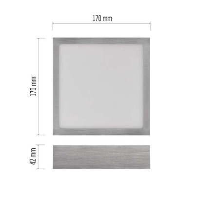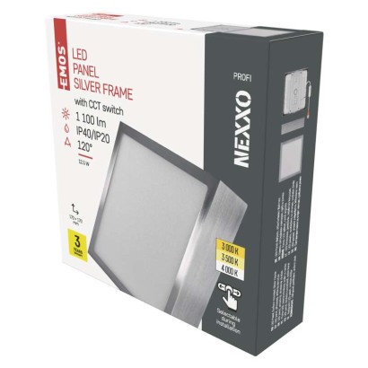 diaľkový ovládač: nie|do chodby a na schodisko: áno|do dielne a garáže: nie|do kancelárie: áno|do kuchyne: áno|do kúpeľne: nie|do obývačky, spálne a detskej izby: áno|dosah senzora: nemá senzor|do záhrady a na balkón: nie|farba svetla: teplá biela–neutrálna biela|farba tela: brúsený nikel|flicker-free: nebliká|frekvencia: 50/60 Hz|index podania farieb (CRI): Ra > 80|kategória: PROFI|krytie: IP40/IP20|materiál difúzora: plast (PMMA)|materiál LGP: PMMA|materiál tela: oceľový plech|montážny otvor: neuvádza sa|možnosť stmievania: nie|náhrada za žiarovku: 75 W|napätie: 220–240 V|pohybový senzor: nie|predajný obal: 1 ks, krabica|príkon: 12,5 W|prúd: 300 mA|rada: NEXXO|rozmer: 170 × 170 × 42 mm|spôsob montáže: prisadené|svetelná účinnosť: 90 lm/W|svetelný tok: 1 100 lm|teplota chromatičnosti: 3 000/3 500/4 000 K|tvar: štvorec|typ difúzora: mliečny|typ svietidla: klasické svietidlo|účinník: > 0,5|UGR<: neuvádza sa|uhol vyžarovania: 120°|umiestnenie: stropné/nástenné|výstupný prúd zo zdroja: neuvádza sa|záručná doba: 3 roky|zdroj svetla: LED|životnosť: 30 000 hodín