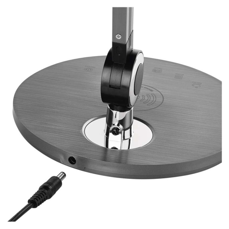 činiteľ starnutia: neuvádza sa|čip LED: neuvádza sa|dĺžka prívodného kábla: 1.3 m|energetická trieda: neuvádza sa|energetická trieda (od 1.9.2021): neuvádza sa|farba: čierna|farba svetla: teplá/neutrálna/studená biela|index podania farieb (CRI): Ra >80|integrovaná nabíjacia batéria: nie|krytie: IP20|materiál: hliník/plast|max. výkon: neuvádza sa|napájacie trafo: USB kábel|napájací zdroj súčasťou balenia: áno (USB kábel)|napätie: 220–240 V|obsah ortuti: neuvádza sa|pätica (uchytenie žiarovky): neuvádza sa|počet LED: neuvádza sa|počet spínacích cyklov: neuvádza sa|predajný obal: 1 ks, krabica|príkon: 10 W|rozmer: 200 × 550 × 700 mm|rýchlosť nábehu na 100 %: neuvádza sa|stmievanie: áno|svetelný tok: 600 lm|teplota chromatičnosti: 3 000/4 000/6 000 K|typ napájania: sieť|účinník: neuvádza sa|USB port: nie + bezdrôtové nabíjanie|životnosť: neuvádza sa
