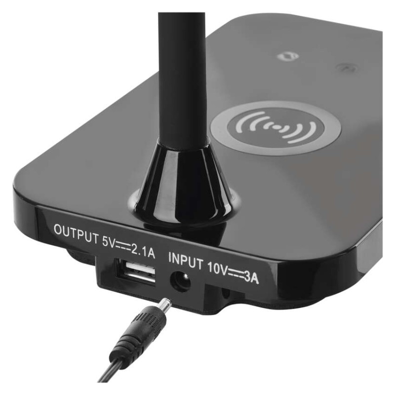 činiteľ starnutia: 0,96|čip LED: SMD|dĺžka prívodného kábla: neuvádza sa|energetická trieda: neuvádza sa|energetická trieda (od 1.9.2021): neuvádza sa|farba: čierna|farba svetla: teplá/neutrálna/studená biela|index podania farieb (CRI): Ra > 90|integrovaná nabíjacia batéria: nie|krytie: IP20|materiál: ABS plast|max. výkon: 5,5 W|napájacie trafo: neuvádza sa|napájací zdroj súčasťou balenia: áno|napätie: 220–240 V|obsah ortuti: neuvádza sa|pätica (uchytenie žiarovky): neuvádza sa|počet LED: neuvádza sa|počet spínacích cyklov: neuvádza sa|predajný obal: 1 ks, krabica|príkon: 5,5 W|rozmer: 350 mm|rýchlosť nábehu na 100 %: neuvádza sa|stmievanie: áno|svetelný tok: 300 lm|teplota chromatičnosti: 2 700–4 500 K|typ napájania: sieť|účinník: neuvádza sa|USB port: áno + bezdrôtové nabíjanie|životnosť: neuvádza sa