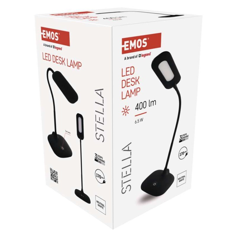 činiteľ starnutia: neuvádza sa|čip LED: neuvádza sa|dĺžka prívodného kábla: 1,7 m|energetická trieda: A+|farba: čierna|farba svetla: neutrálna biela|index podania farieb (CRI): Ra >80|integrovaná nabíjacia batéria: nie|krytie: IP20|materiál: plast + GUMA|max. výkon: neuvádza sa|napájacie trafo: 12 V/400 mA|napájací zdroj súčasťou balenia: áno|napätie: 100–240 V|obsah ortuti: <0 mg|pätica (uchytenie žiarovky): neuvádza sa|počet LED: neuvádza sa|počet spínacích cyklov: neuvádza sa|predajný obal: 1 ks, krabica|príkon: 5 W|rozmer: 160 × 550 × 345 mm|rýchlosť nábehu na 100 %: neuvádza sa|stmievanie: áno|svetelný tok: 500 lm|teplota chromatičnosti: 4 000 K|typ napájania: sieť|účinník: neuvádza sa|USB port: nie|životnosť: neuvádza sa
