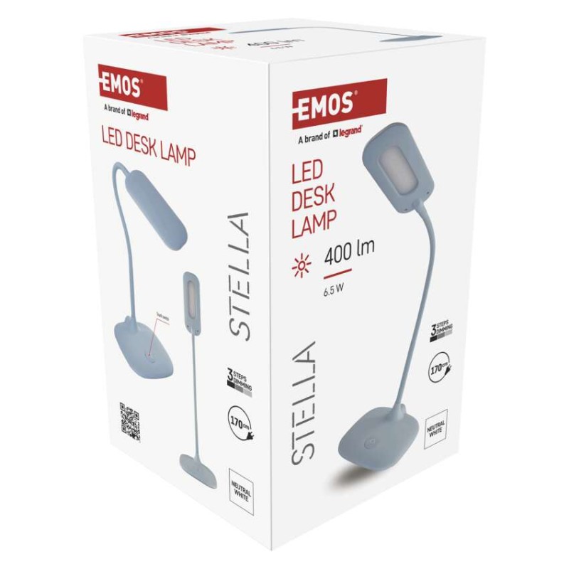 činiteľ starnutia: neuvádza sa|čip LED: neuvádza sa|dĺžka prívodného kábla: 1,7 m|energetická trieda: A+|farba: modrá|farba svetla: neutrálna biela|index podania farieb (CRI): Ra >80|integrovaná nabíjacia batéria: nie|krytie: IP20|materiál: plast + GUMA|max. výkon: neuvádza sa|napájacie trafo: 12 V/400 mA|napájací zdroj súčasťou balenia: áno|napätie: 100–240 V|obsah ortuti: <0 mg|pätica (uchytenie žiarovky): neuvádza sa|počet LED: neuvádza sa|počet spínacích cyklov: neuvádza sa|predajný obal: 1 ks, krabica|príkon: 5 W|rozmer: 160 × 550 × 345 mm|rýchlosť nábehu na 100 %: neuvádza sa|stmievanie: áno|svetelný tok: 500 lm|teplota chromatičnosti: 4 000 K|typ napájania: sieť|účinník: neuvádza sa|USB port: nie|životnosť: neuvádza sa