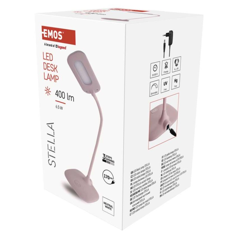 činiteľ starnutia: neuvádza sa|čip LED: neuvádza sa|dĺžka prívodného kábla: 1,7 m|energetická trieda: A+|farba: ružová|farba svetla: neutrálna biela|index podania farieb (CRI): Ra >80|integrovaná nabíjacia batéria: nie|krytie: IP20|materiál: plast + GUMA|max. výkon: neuvádza sa|napájacie trafo: 12 V/400 mA|napájací zdroj súčasťou balenia: áno|napätie: 100–240 V|obsah ortuti: <0 mg|pätica (uchytenie žiarovky): neuvádza sa|počet LED: neuvádza sa|počet spínacích cyklov: neuvádza sa|predajný obal: 1 ks, krabica|príkon: 5 W|rozmer: 160 × 550 × 345 mm|rýchlosť nábehu na 100 %: neuvádza sa|stmievanie: áno|svetelný tok: 500 lm|teplota chromatičnosti: 4 000 K|typ napájania: sieť|účinník: neuvádza sa|USB port: nie|životnosť: neuvádza sa