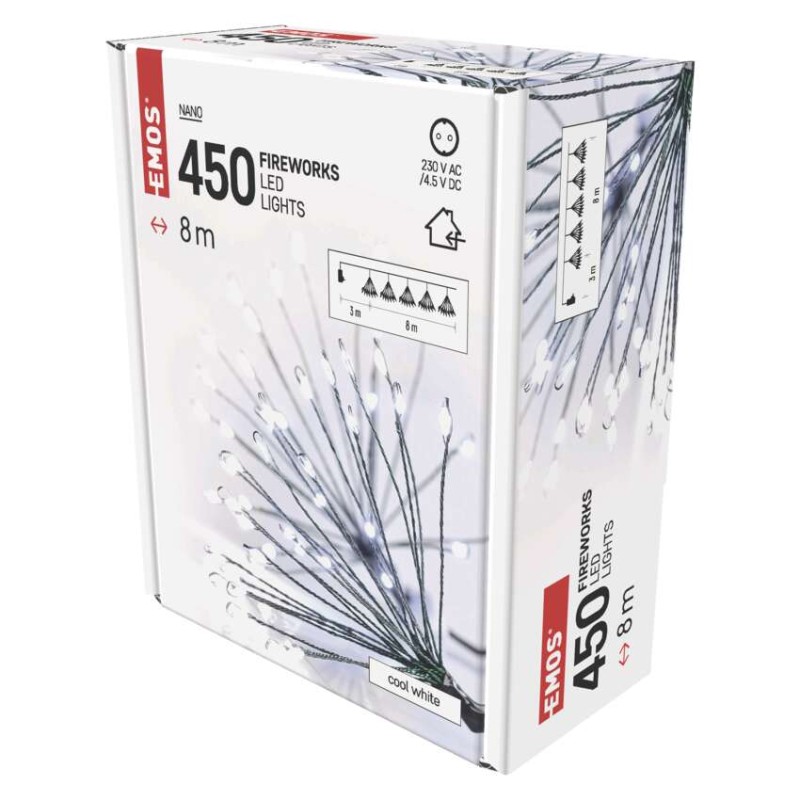 časovač: áno|diaľkový ovládač: nie|dĺžka prívodu: 3 m|farba drôtu: zelená|farba svetla: studená biela|funkcia: svieti|krytie: IP20|LED medzera: neuvádza sa|materiál: kov|možnosť prepojenia: nie|počet LED: 450|použitie: vnútorné|predajný obal: 1 ks, krabica|pre výšku stromu: neuvádza sa|príkon: 6 W|produkt: reťaz|rozmer: 8 m|tvar: nano|typ napájania: sieťový adaptér|veľkosť LED: 3 mm (nano)|vstupné napätie: 230 V AC|výstupné napätie: 4,5 V DC|záručná doba: 2 roky|životnosť: 10 000 hodín