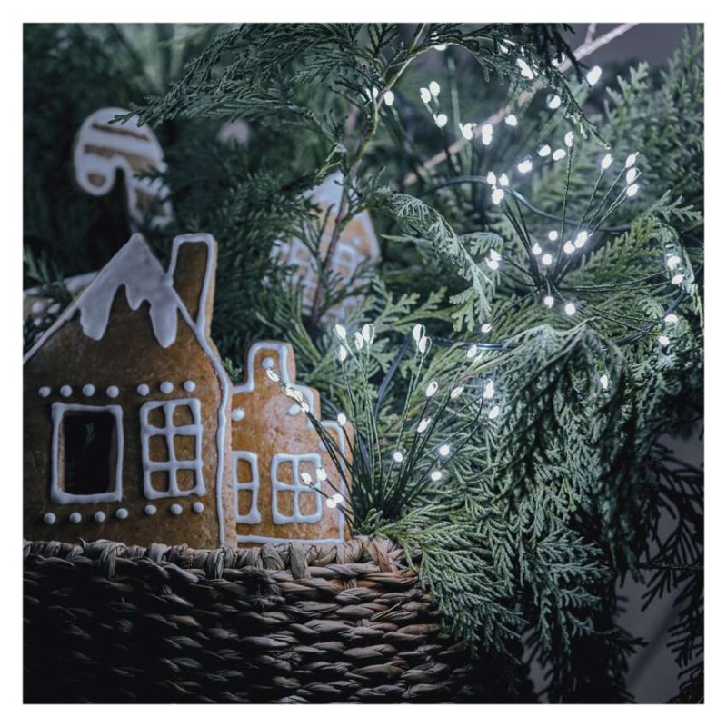 LED svetelná reťaz – svietiace trsy, nano, 8 m, vnútorná, studená biela, časovač 8592920099780