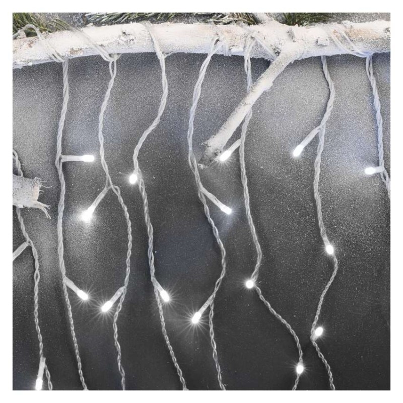LED vianoč. cencúle, 5 m, vonkajšie aj vnútor., studená biela, ovládač, programy, časovač 8592920095744