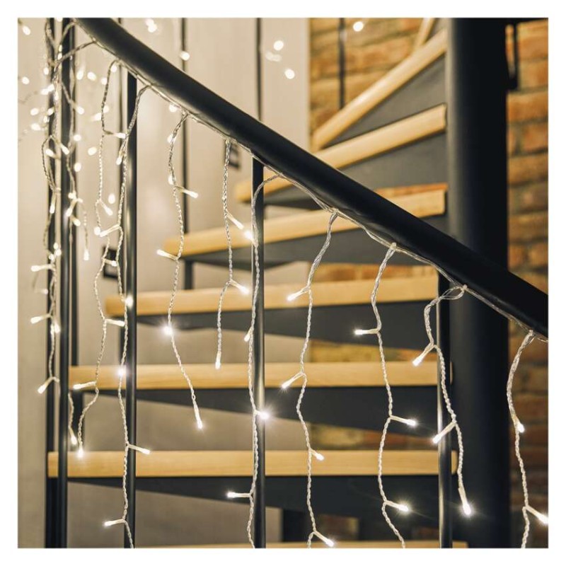 LED vianoč. cencúle, 5 m, vonkajšie aj vnútorné, teplá biela, ovládač, programy, časovač 8592920095478