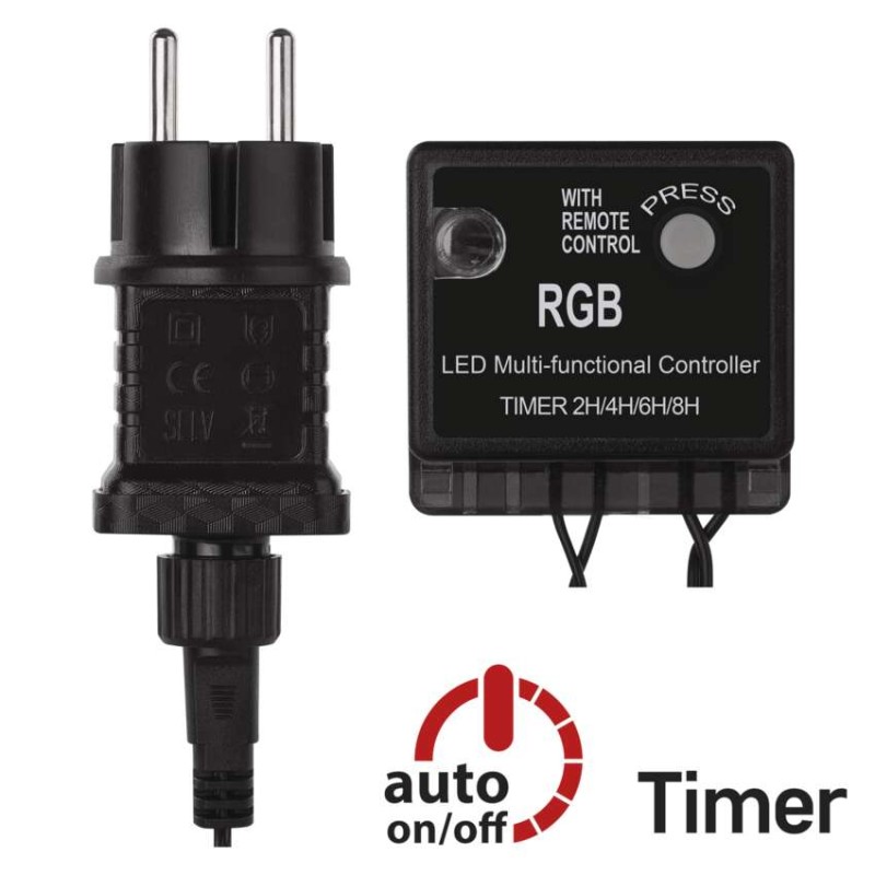 časovač: áno|diaľkový ovládač: áno (CR2032)|dĺžka prívodu: 5 m|farba drôtu: čierna|farba svetla: RGB|funkcia: 64 módov (multifunkcie)|krytie: IP44|LED medzera: 10 cm|materiál: PVC|možnosť prepojenia: nie|počet LED: 96|použitie: vonkajšie aj vnútorné|predajný obal: 1 ks, krabica|pre výšku stromu: 160 cm|príkon: 6 W|produkt: reťaz|rozmer: 10 m|tvar: gulička|typ napájania: sieťový adaptér|veľkosť LED: 5 mm|vstupné napätie: 230 V AC|výstupné napätie: neuvádza sa|záručná doba: 2 roky|životnosť: 10 000 hodín