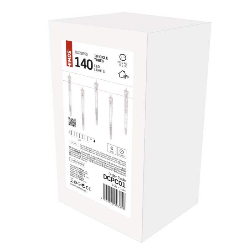 LED vianočná girlanda – 10x cencúľ, 3,6 m, vonkajšia aj vnútorná, studená biela 8592920093856