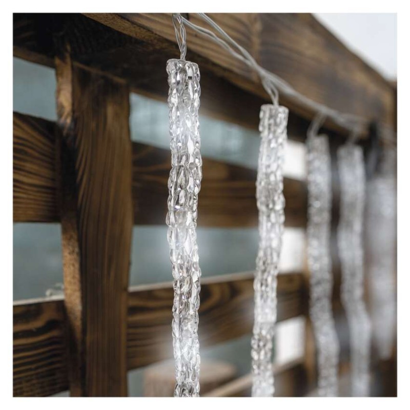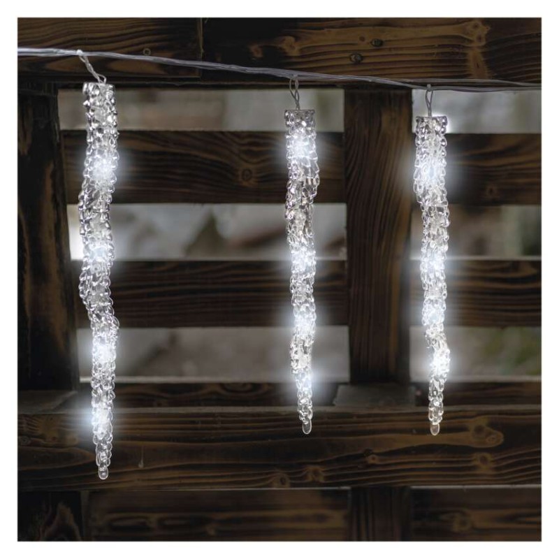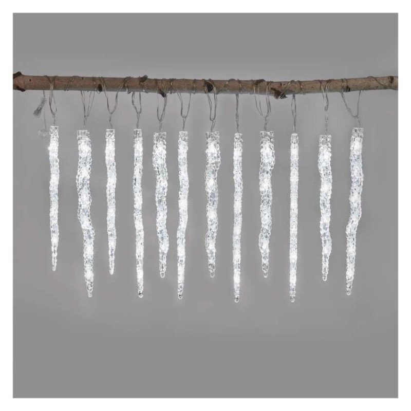 LED vianočná girlanda – cencúle, 12 ks, 3,6 m, vonk. a vnút., studená biela 8592920099353