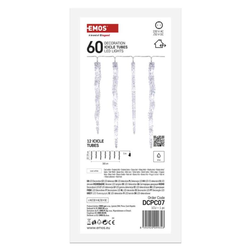 časovač: nie|diaľkový ovládač: nie|dĺžka prívodu: 5 m|farba drôtu: transparentná|farba svetla: studená biela|krytie: IP44|materiál: plast|počet LED: 60|použitie: vonkajšie aj vnútorné|predajný obal: 1 ks, krabica|príkon: 6 W|produkt: girlanda|rozmer: 3,6 m|typ napájania: sieťový adaptér|vstupné napätie: 230 V AC|výstupné napätie: 30 V DC|záručná doba: 2 roky|zdroj svetla: LED|životnosť: 10 000 hodín