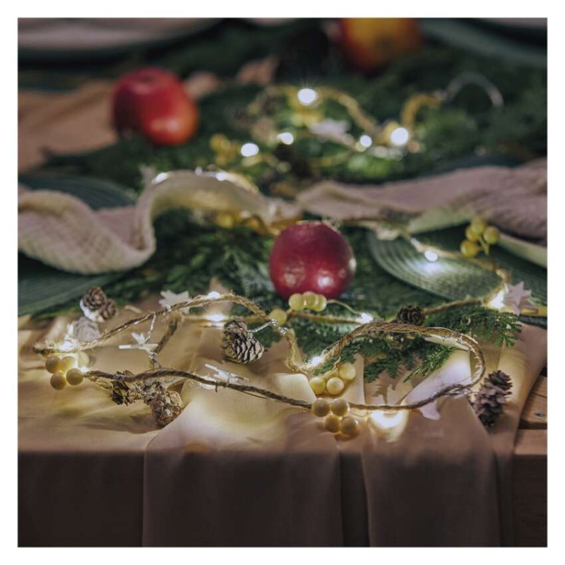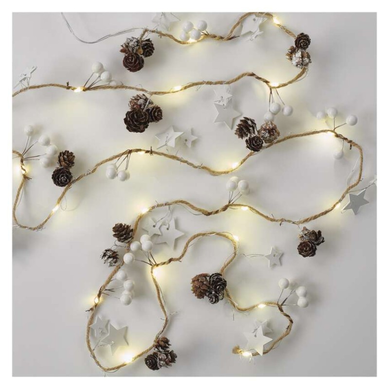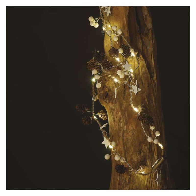 LED vianočná girlanda – šišky, 1,7 m, 2x AA, vnútorná, teplá biela 8592920098998