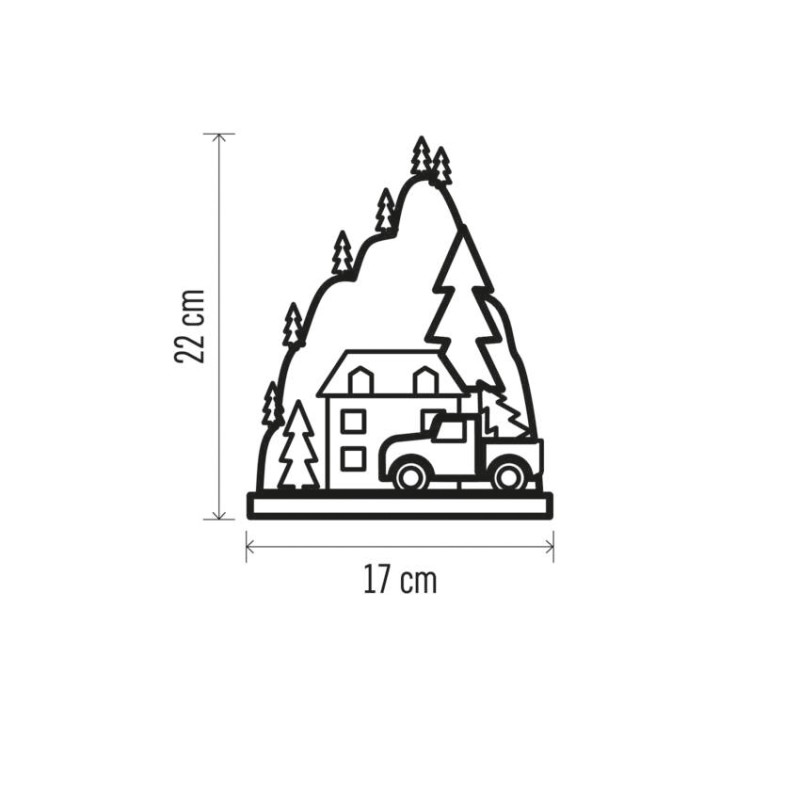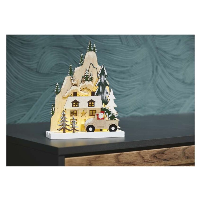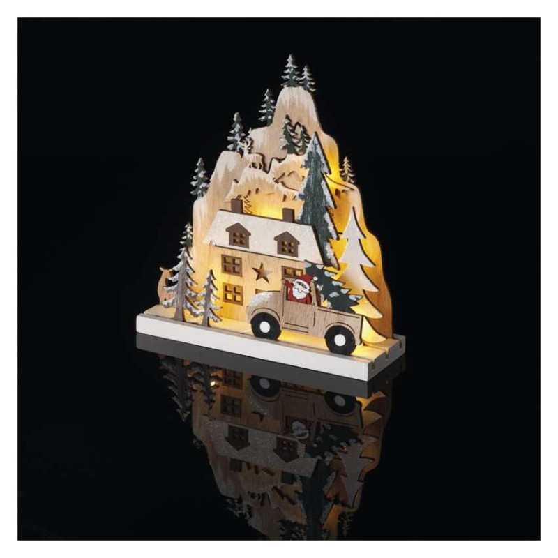 • LED vianočná krajinka drevená, 22 cm, 2x AA, vnútorná, teplá biela, časovač 8592920098141