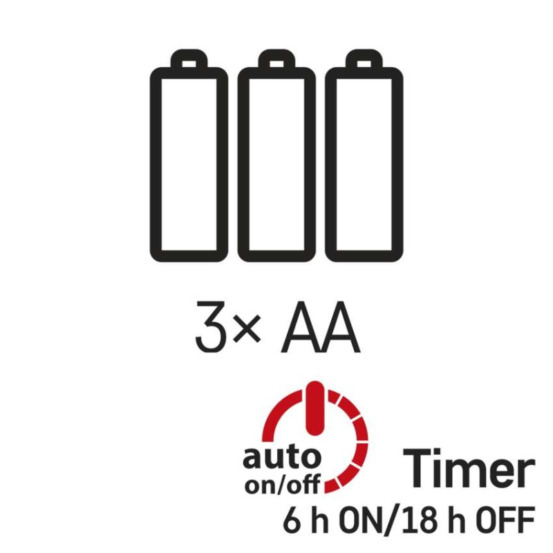 časovač: áno|diaľkový ovládač: nie|dĺžka prívodu: 0,3 m|farba drôtu: strieborná|farba svetla: studená biela|funkcia: svieti|krytie: IP20|LED medzera: 2,4 cm|materiál: kov|možnosť prepojenia: nie|počet LED: 100|použitie: vnútorné|predajný obal: 1 ks, krabica|pre výšku stromu: neuvádza sa|príkon: 0,9 W|produkt: ježko|rozmer: 2,4 m|tvar: nano|typ napájania: batéria (3× AA)|veľkosť LED: 3 mm (nano)|vstupné napätie: neuvádza sa|výstupné napätie: 4,5 V DC|záručná doba: 2 roky|životnosť: 10 000 hodín