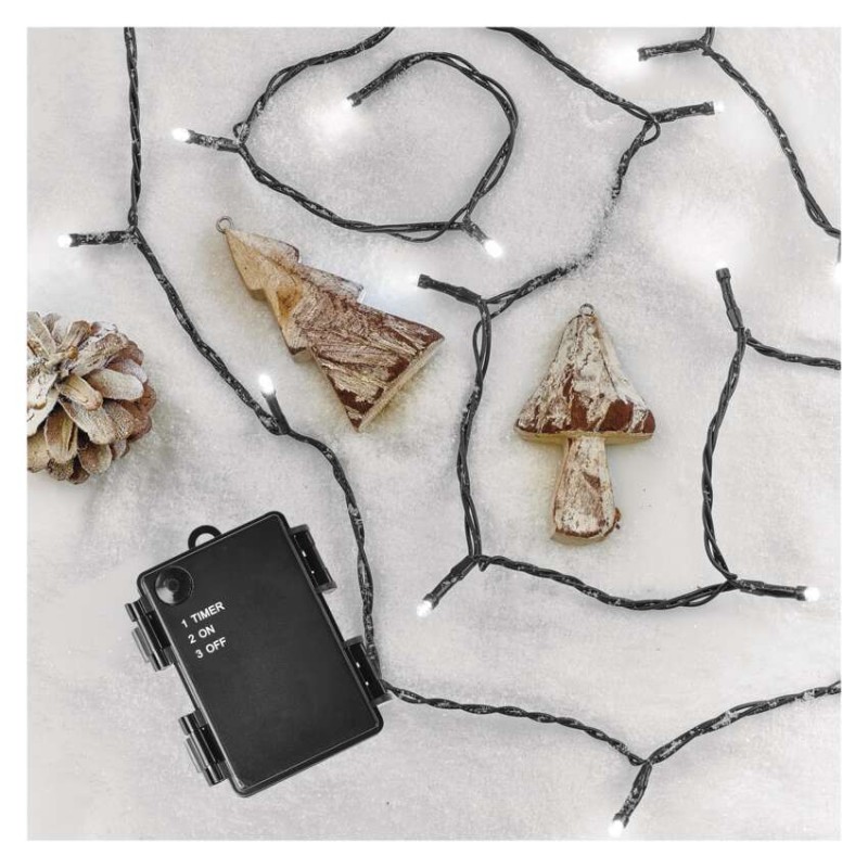 LED vianočná reťaz, 2,8 m, 3x AA, vonkajšia aj vnútorná, studená biela, časovač 8592920121849