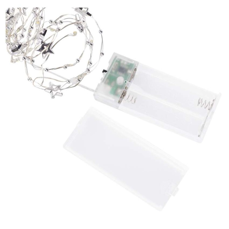 LED vianočná reťaz strieborný – hviezdičky, 1,9 m, 2x AA, vnútorný, teplá biela, časovač 8592920111307