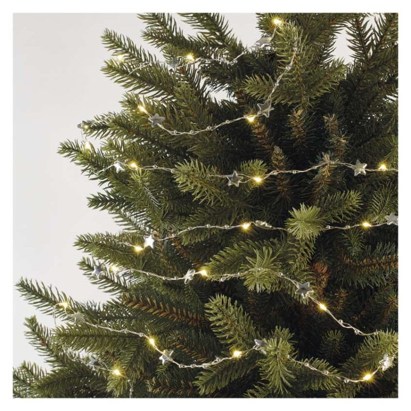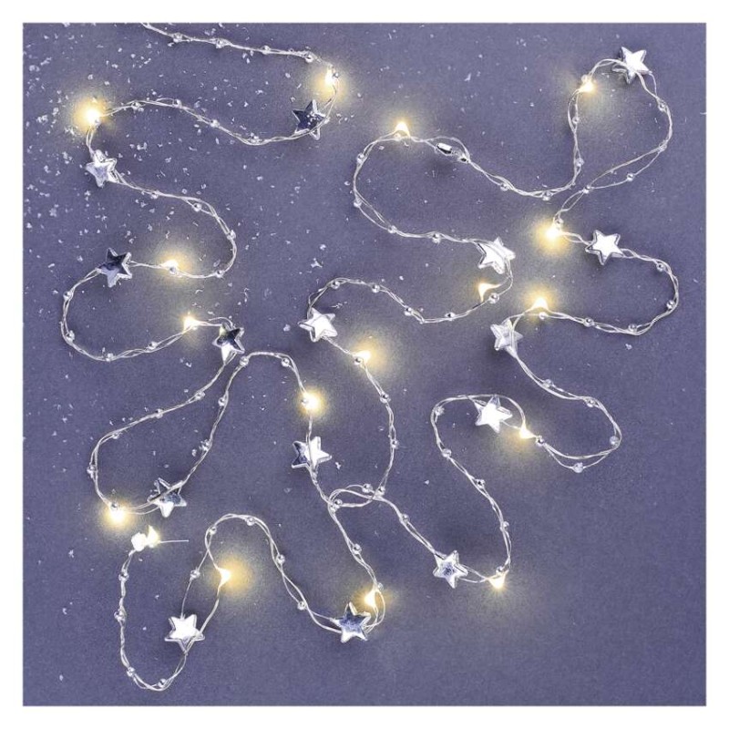 • LED vianočná reťaz strieborný – hviezdičky, 1,9 m, 2x AA, vnútorný, teplá biela, časovač 8592920111307