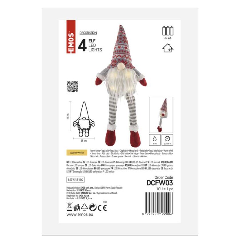 časovač: nie|diaľkový ovládač: nie|dĺžka prívodu: neuvádza sa|farba drôtu: neuvádza sa|farba svetla: teplá biela|krytie: IP20|materiál: neuvádza sa|počet LED: 4|použitie: vnútorné|predajný obal: 1 ks, krabica|príkon: 0,22 W|produkt: škriatok|rozmer: #|typ napájania: batéria (3× AA)|vstupné napätie: neuvádza sa|výstupné napätie: 4,5 V DC|záručná doba: 2 roky|zdroj svetla: LED|životnosť: 10 000 hodín