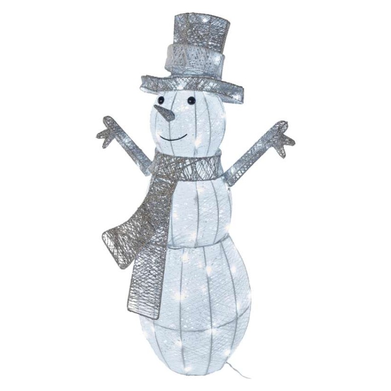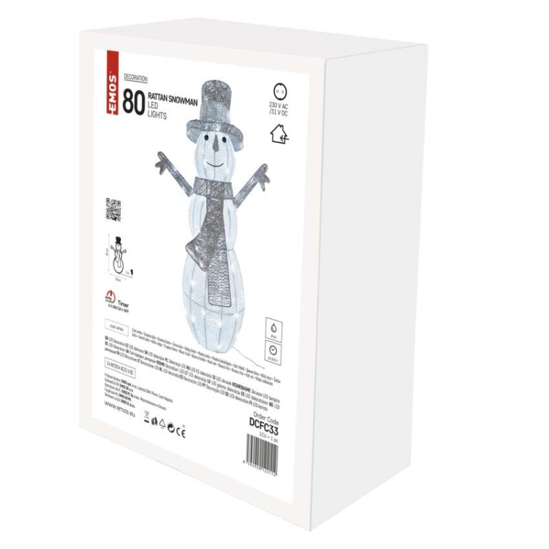 LED vianočný snehuliak ratanový, 82 cm, vnútorný, studená biela, časovač 8592920122112