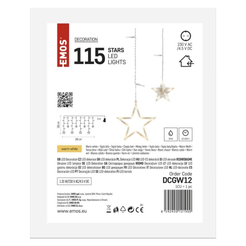 LED vianočný záves – hviezdy, 185x105 cm, vnútorný, teplá biela 8592920121900