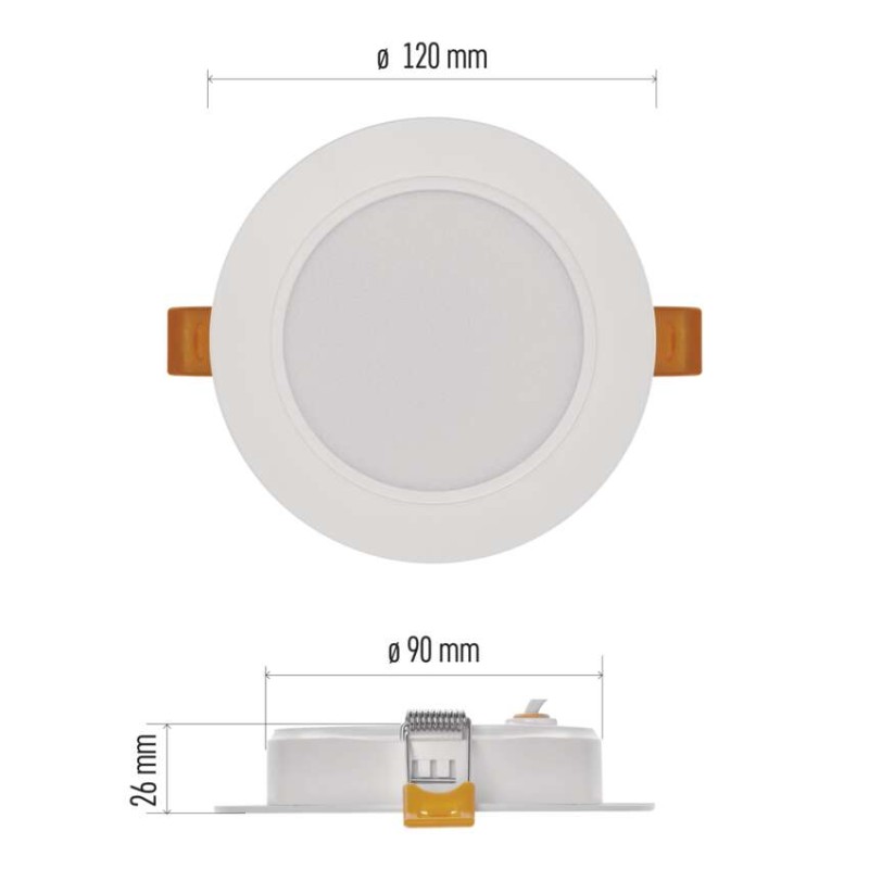 diaľkový ovládač: nie|do chodby a na schodisko: áno|do dielne a garáže: nie|do kancelárie: nie|do kuchyne: áno|do kúpeľne: nie|do obývačky, spálne a detskej izby: nie|dosah senzora: nemá senzor|do záhrady a na balkón: nie|farba svetla: neutrálna biela|farba tela: biela|flicker-free: neuvádza sa|frekvencia: 50/60 Hz|index podania farieb (CRI): Ra > 80|kategória: ESSENTIAL|krytie: IP20|materiál difúzora: plast (PC)|materiál LGP: neuvádza sa|materiál tela: plast (PC)|montážny otvor: 90–110 mm|možnosť stmievania: nie|náhrada za žiarovku: 65 W|napätie: 220–240 V|pohybový senzor: nie|predajný obal: 1 ks, krabica|príkon: 9 W|prúd: 78 mA|rada: RUBIC|rozmer: priemer 120 × 26 mm|spôsob montáže: vstavané|svetelná účinnosť: 100 lm/W|svetelný tok: 900 lm|teplota chromatičnosti: 4 000 K|tvar: kruh|typ difúzora: mliečny|typ svietidla: klasické svietidlo|účinník: > 0,5|UGR<: neuvádza sa|uhol vyžarovania: 120°|umiestnenie: stropné|výstupný prúd zo zdroja: 50 mA|záručná doba: 2 roky|zdroj svetla: LED|životnosť: 25 000 hodín