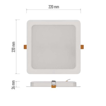 diaľkový ovládač: nie|do chodby a na schodisko: áno|do dielne a garáže: nie|do kancelárie: nie|do kuchyne: áno|do kúpeľne: nie|do obývačky, spálne a detskej izby: nie|dosah senzora: nemá senzor|do záhrady a na balkón: nie|farba svetla: neutrálna biela|farba tela: biela|flicker-free: neuvádza sa|frekvencia: 50/60 Hz|index podania farieb (CRI): Ra > 80|kategória: ESSENTIAL|krytie: IP20|materiál difúzora: plast (PC)|materiál LGP: neuvádza sa|materiál tela: plast (PC)|montážny otvor: 190–210 mm|možnosť stmievania: nie|náhrada za žiarovku: 145 W|napätie: 220–240 V|pohybový senzor: nie|predajný obal: 1 ks, krabica|príkon: 24 W|prúd: 209 mA|rada: RUBIC|rozmer: 220 × 220 × 26 mm|spôsob montáže: vstavané|svetelná účinnosť: 100 lm/W|svetelný tok: 2 400 lm|teplota chromatičnosti: 4 000 K|tvar: štvorec|typ difúzora: mliečny|typ svietidla: klasické svietidlo|účinník: > 0,7|UGR<: neuvádza sa|uhol vyžarovania: 120°|umiestnenie: stropné|výstupný prúd zo zdroja: 50 mA|záručná doba: 2 roky|zdroj svetla: LED|životnosť: 25 000 hodín