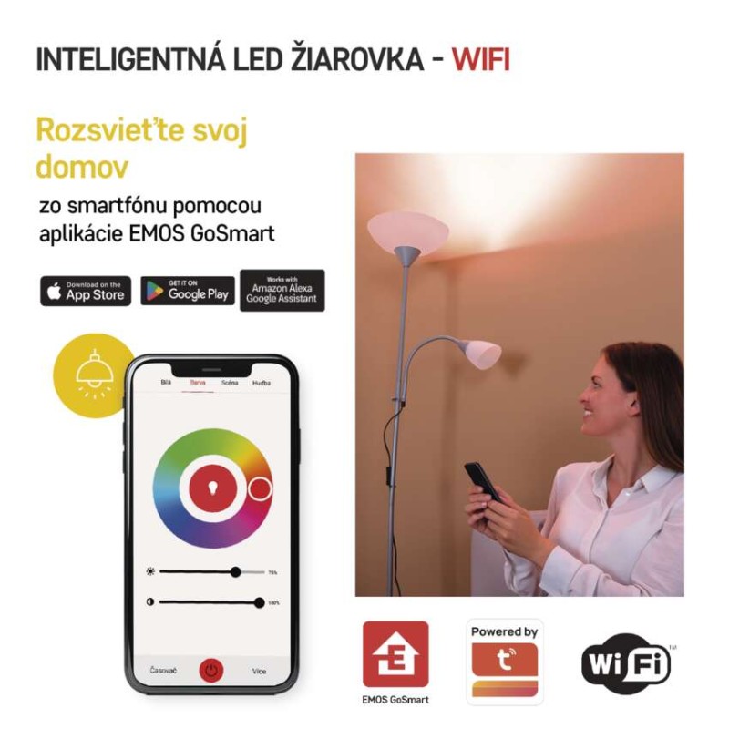 • LED žiarovka GoSmart A65 / E27 / 14 W (94 W) / 1 400 lm / RGB / stmievateľná / Wi-Fi 8592920120187