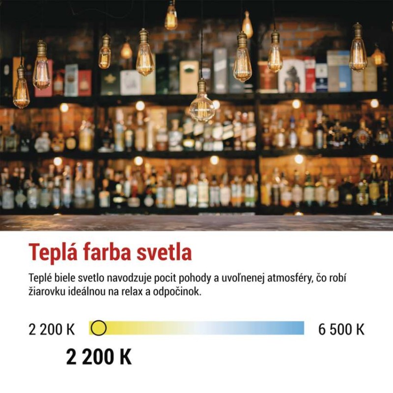 energetická trieda: F|farba svetla: teplá biela|index podania farieb (CRI): Ra >80|kompatibilita: #|náhrada za žiarovku: 40 W|napätie: 230 V~/50 Hz|notifikácie do mobilnej aplikácie: #|ovládanie hlasovými asistentmi: #|pätica (uchytenie žiarovky): E27|počet čipov: 4|počet spínacích cyklov: 25 000|podporované OS: #|predajný obal: 1 ks, krabička|prenosová frekvencia: #|príkon: 4,5 W|protokol: #|rada: VINTAGE|rozmer: 60 × 60 × 108 mm|stmievateľná: nie|svetelná účinnosť: 93 lm/W|svetelný tok: 420 lm|technológia: LED|teplota chromatičnosti: 2 200 K|tvar: A60|typ čipov: COB|účinník: 0,40|uhol vyžarovania: 320°|záručná doba: 3 roky|životnosť: 25 000 hodín