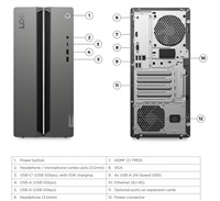 Model: Lenovo LOQ Tower 17IRR9 Provedení: Tower (17L) Operační systém: ne Procesor: Intel Core i5-14400F (10 jader - 6P + 4E, 16 vláken, P-core 2,5/4,7 GHz, E-core 1,8/3,5 GHz, 20 MB cache) Paměť: 1x 16GB UDIMM DDR5-4800 Počet slotů (celkem/volných): (2/1) Maximální velikost paměti: 32GB DDR5-5600 Pevný disk: 1TB SSD M.2 2280 PCIe® 4.0x4 NVMe® Pozice pro interní jednotku: Až dva disky, 1x 3,5" HDD + 1x M.2 SSD Optická mechanika: ne Grafická karta: NVIDIA® GeForce RTX™ 3050 6GB GDDR6 108 AI TOPS Audio: kodek Realtek® ALC623-CG Síť: Ethernet (100/1000M) Bezdrátová komunikace: WLAN + Bluetooth (Wi-Fi® 6E, 802.11ax 2x2 + BT5.3) Klávesnice: USB klávesnice Calliope, černá, čeština / slovenština Myš: USB myš Calliope, černá Zabezpečení: * bezpečnostní čip Firmware TPM 2.0 integrovaný v procesoru Systém VESA: ne Čtečka paměťových karet: Ne Napájení: zdroj 310W 92% Přední porty: * 1x USB-C® (USB 5Gbps / USB 3.2 Gen 1), s 15W nabíjením * 2x USB-A (USB 5Gbps / USB 3.2 Gen 1) * 1x kombinovaný konektor pro sluchátka / mikrofon (3,5 mm) Zadní porty: * 4x USB-A (Hi-Speed USB / USB 2.0) * 1x HDMI® 2.1 TMDS * 1x VGA * 1x RJ-45 * 1x sluchátka (3,5 mm) * 1x napájecí konektor * 1x HDMI® 2.1 FRL, 1x DP 1.4, 1x DVI na NVIDIA® GeForce RTX™ 3050 Rozšiřující sloty: * 1x PCIe® 4.0 x16, plná výška * 1x PCIe® 3.0 x1, plná výška * 2x slot M.2 (jeden pro WLAN, jeden pro SSD) Barva: Luna Grey (přední kryt), Raven Black (šasi) Rozměry: 170 x 279 x 376 mm Hmotnost: cca 8,0 kg Záruka: 2 roky Odkaz na stránku výrobce: https://psref.lenovo.com/Detail/LOQ_Tower_17IRR9?M=90X000GLCK