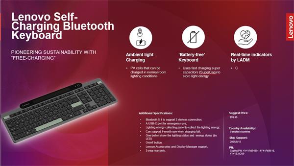 Lenovo Self-Charging Bluetooth Keyboard - Slovak - klavesnica 4Y41R69513