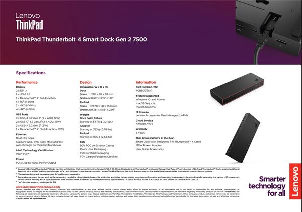 Lenovo ThinkPad Thunderbolt 4 Smart Dock Gen2 7500 - EU 40BE0135EU