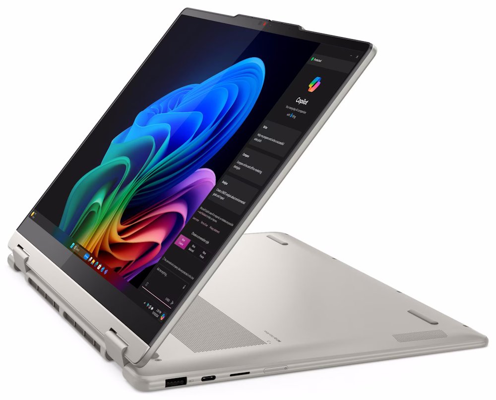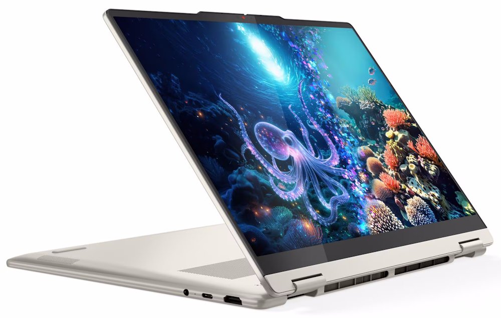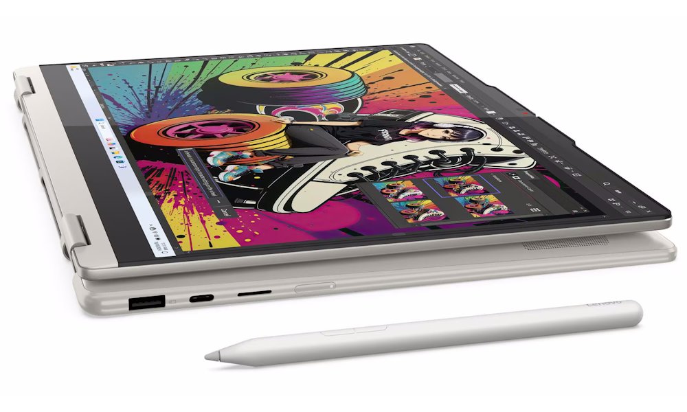 Konvertibilní notebook s AMD Ryzen AI 7 350 procesorem a AI akcelerací až 50 TOPS. 14" WUXGA OLED displej s 100% DCI-P3, 16GB LPDDR5X RAM, 1TB SSD, stylus Lenovo Yoga Pen, certifikace MIL-STD-810H, Windows 11 Home.