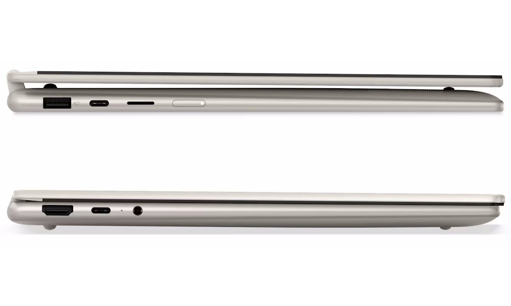 Konektivita: Wi-Fi 7 (802.11be), Bluetooth 5.4, 1× USB 3.0, 2× USB-C 3.1 (PD 45–65 W, DisplayPort), HDMI 2.1, 3,5mm jack, microSD slot