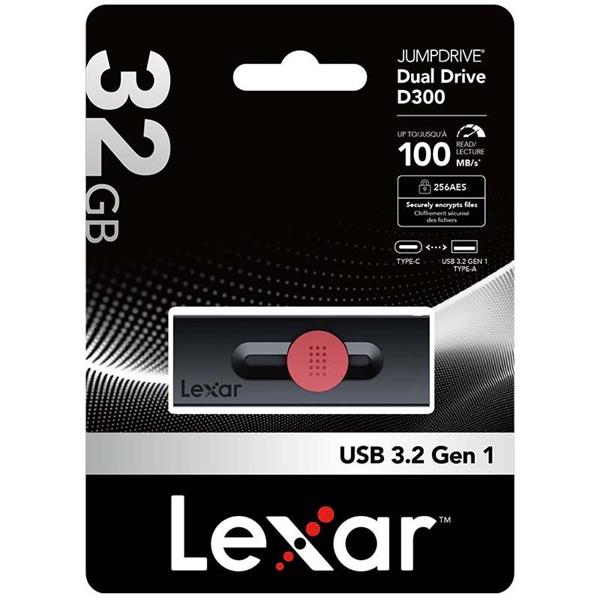 Lexar Jumpdrive D300 Dual Type-C and Type-A Flash Drive, R100 (USB 3.2) 32GB LJDD300032G-BNBNG