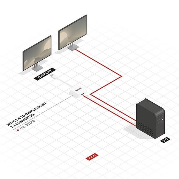 Konvertor Lindy HDMI na DisplayPort je ideálny na pripojenie zdroja vybaveného HDMI, ako je počítač, laptop alebo prehrávač Blu-ray, k monitoru alebo projektoru s rozhraním DisplayPort. Podporuje rozlíšenie videa až do Ultra HD 4K, ako aj 7.1-kanálový priestorový zvuk.