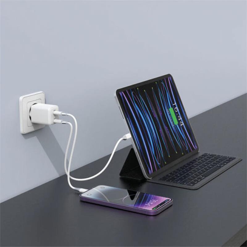 Nabíjačka s výkonom 35W - vhodné riešenie na cesty alebo do kancelárie - GaN technológia poskytuje výrazne rýchlejšie a efektívnejšie nabíjanie - súčasne nabíja až 2 zariadenia pomocou USB-C vstupov - podpora PD 3.0 s výkonom až 35W - ochrana pred prehriatím, prebitím, prepätím aj skratu Rozmery: 80 x 40 x 25 mm Hmotnosť: 53 g