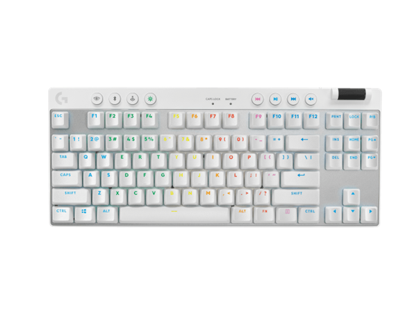 Logitech G PRO X TKL - Klávesnice - hraní - podsvícení - bezdrátový - 2.4 GHz, Bluetooth - QWERTY - US mezinárodní - klávesový spínač: Tactile - bíláKlávesnice - hraní - podsvícení - bezdrátový - 2.4 GHz, Bluetooth - QWERTY - US mezinárodní - klávesový spínač: Tactile - bílá