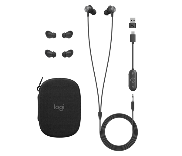 Logitech Zone Wired Earbuds - Náhlavní souprava - špuntová sluchátka - kabelové - 3.5 mm jack - izolace zvuku - grafit - certifikováno pro Microsoft TeamsNáhlavní souprava - špuntová sluchátka - kabelové - 3.5 mm jack - izolace zvuku - grafit - certifikováno pro Microsoft Teams