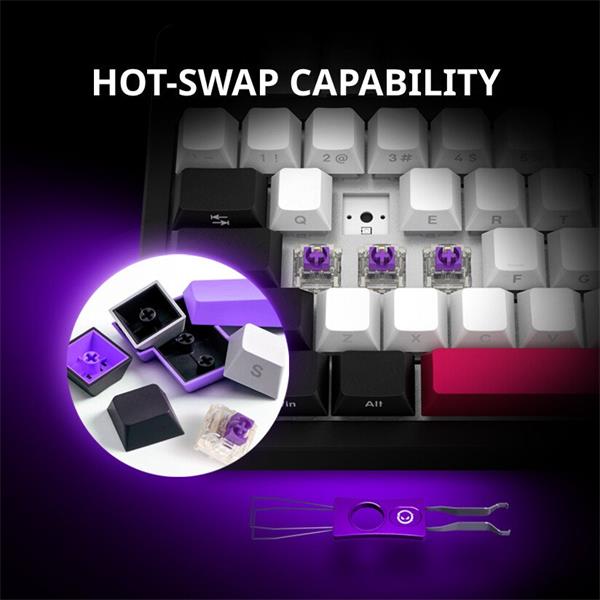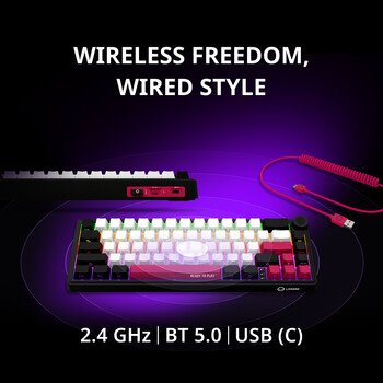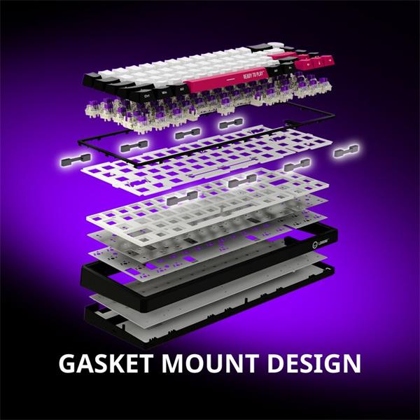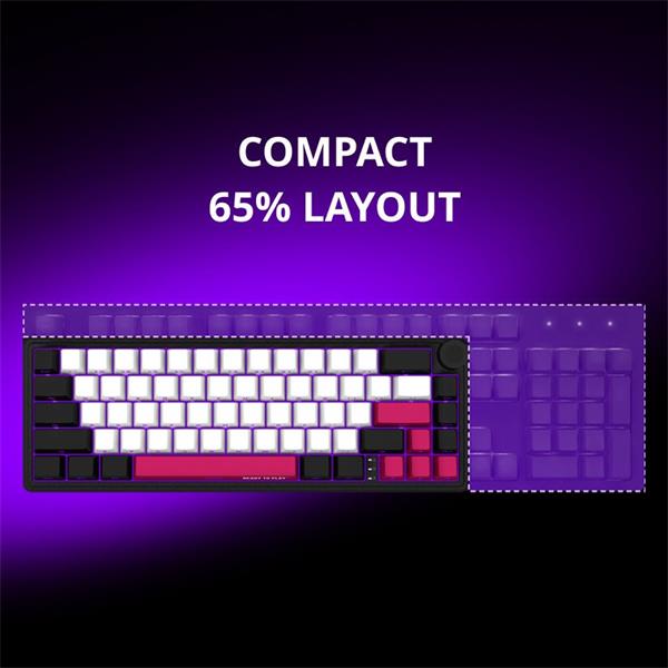 Herná klávesnica KBP70MW ponúka profesionálny bezdrôtový výkon s pripojením cez 2.4 GHz a BT 5.0. Je vybavená prémiovými mechanickými spínačmi s odolnosťou až 50 miliónov stlačení a dizajnom typu „gasket mount“, ktorý zaručuje dokonalý pocit z písania. 66-klávesové rozloženie poskytuje základné funkcie v kompaktnom formáte.