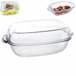 Pekáč skleněný čtvercový s víkem 2,6 lHranatý pekáč s víkem 3 l z varného skla, délka 26 cm, šířka 21,5 cm, výška 11,8 cm. Pekáč je vyroben z tvrdého boritokřemičitého skla, které je velmi odolné, jak mechanicky, tak i teplotně (teplotní rozsah -50 až /