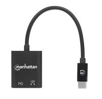 MANHATTAN USB 2.1 Sound Adapter, USB Type-C to C/F (audio) & C/F (PD) black, Retail Box 153348