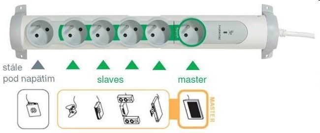 MASTER/SLAVE přepěťová ochrana, 6x2p+t, 1,5m 050087
