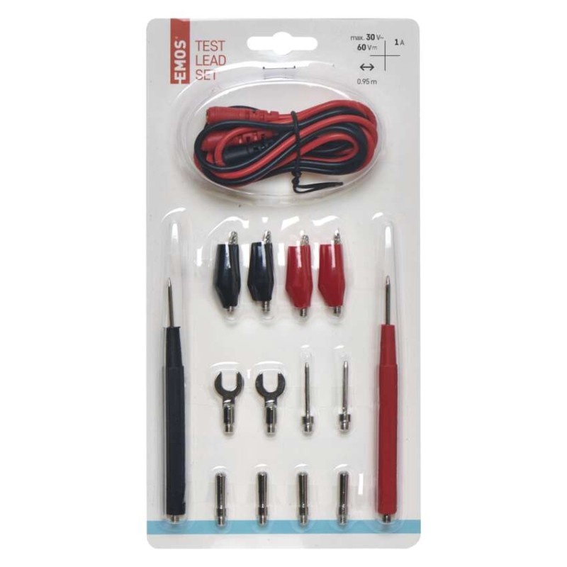 dĺžka šnúry: 95 cm|farba: červená, čierna|max. záťaž: 1 A, 30 V AC, 60 V DC|možnosť výmeny hrotov: áno|predajný obal: 1 ks, blister