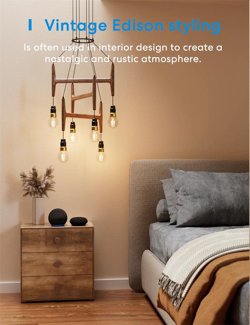 Vintage dizajn: žiarovka v štýle Edison, teplá biela farba 2700 K, ideálna pre domácu dekoráciu. Hlasové ovládanie: Funguje s Apple HomeKit, Apple Watch, Siri, Alexa Echo, Echo Dot, Google Assistant a SmartThings. Ovládajte svoje inteligentné žiarovky ...