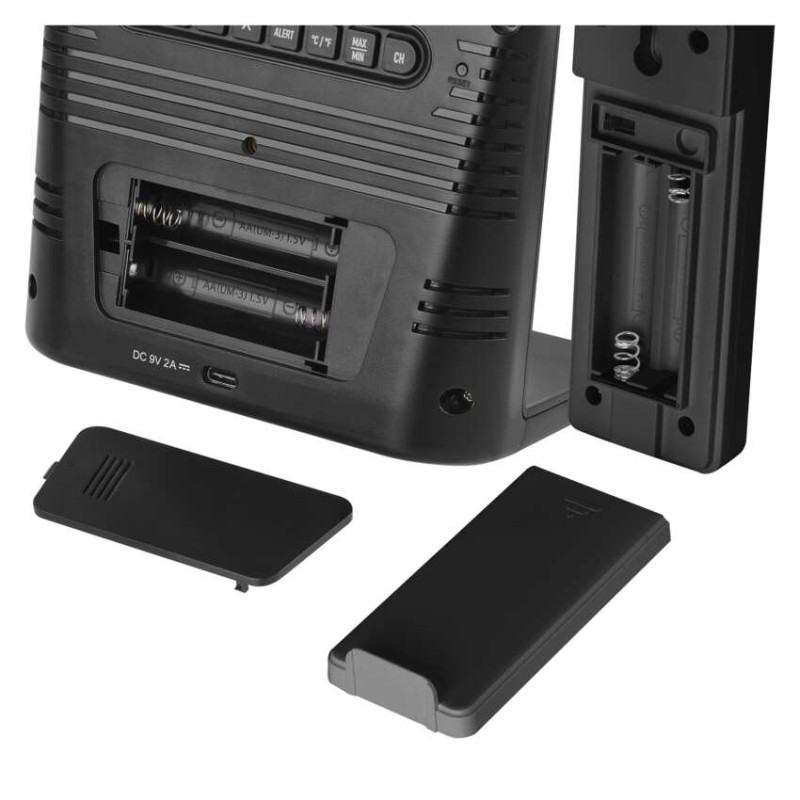 12/24 formát času: áno|anemometer: nie|barometer: áno|budík: áno|časové pásma: áno|dátum: áno|dosah snímača: až 100 m|drôtová sonda k čidlu: nie|elektronické plošné podsvietenie: áno|farebný displej (black mask) podsvietený: áno|fázy mesiaca: áno|hodiny: riadené DCF signálom|kalendár: áno|korekcia nadmorskej výšky: nie|LED podsvietenie displeja: áno|min. a max. teplota: áno|možné ďalšie čidlo: 3 (E00387, E05018)|možnosť nastavenia jednotky teploty °C/°F: °C/°F|možnosť zavesenia na stenu: nie|napájanie čidla: 2× 1,5 V AAA (nie sú súčasťou balenia)|napájanie stanice: 2× 1,5 V AA (nie sú súčasťou balenia)|opakované budenie: áno|predajný obal: 1 ks, krabička|predpoveď počasia: áno|prenosová frekvencia: 433 MHz|prevedenie teplomera: bezdrôtové|produkt: metestanica|projekcia: nie|rozmer čidla: 40 × 26 × 104 mm|rozmer hlavnej jednotky: 133 × 125 × 110 mm|sieťový adaptér: áno, USB-C 9 V DC/2 000 mA, 1,5 m (súčasťou balenia)|teplotná výstraha: áno|trend teploty: áno|trend tlaku: áno|trvalé podsvietenie: áno|veľkosť displeja: 110 × 73 mm|vnútorná teplota: -2 °C až +50 °C, rozlíšenie 0,1 °C|vnútorná vlhkosť: 20 % až 95 % RV, rozlíšenie 1 %|vonkajšia teplota: -50 °C až +70 °C, rozlíšenie 0,1 °C|vonkajšia vlhkosť: 20 % až 95 % RV, rozlíšenie 1 %|zrážkomer: nie
