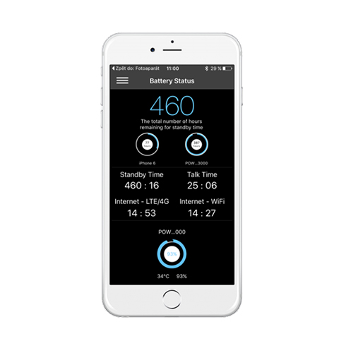 - Monitoring teploty batérie powerbanky a zostávajúcej kapacity powerbanky a spárovaného zariadenia