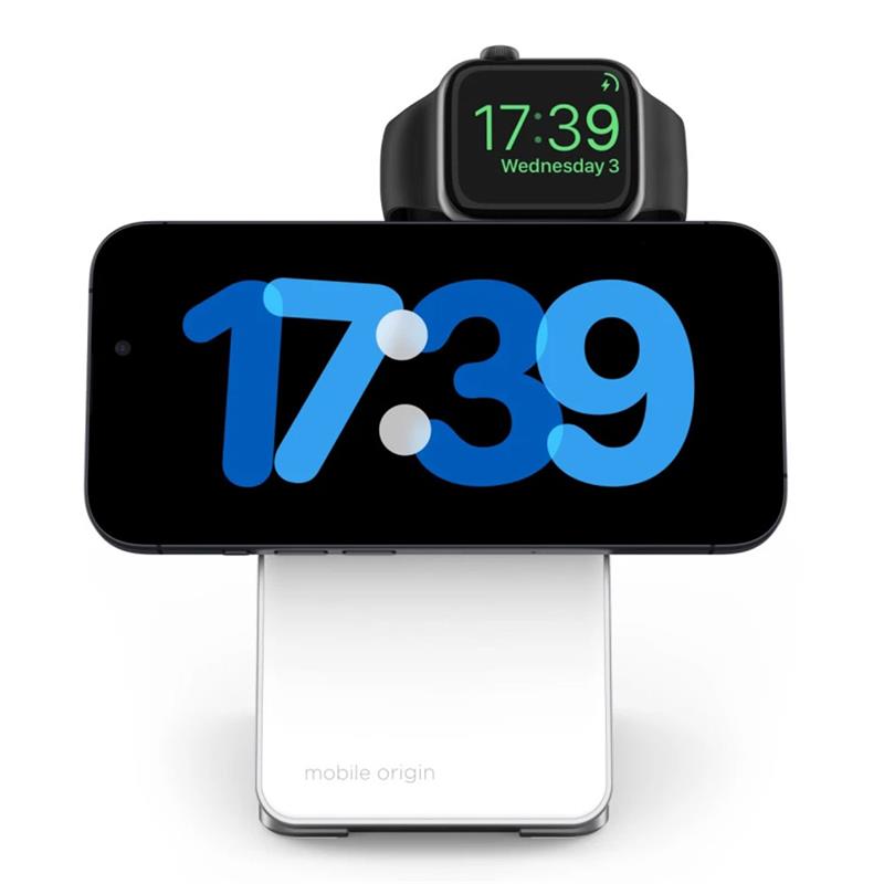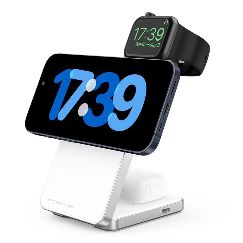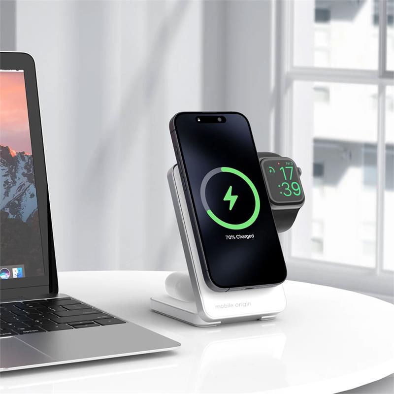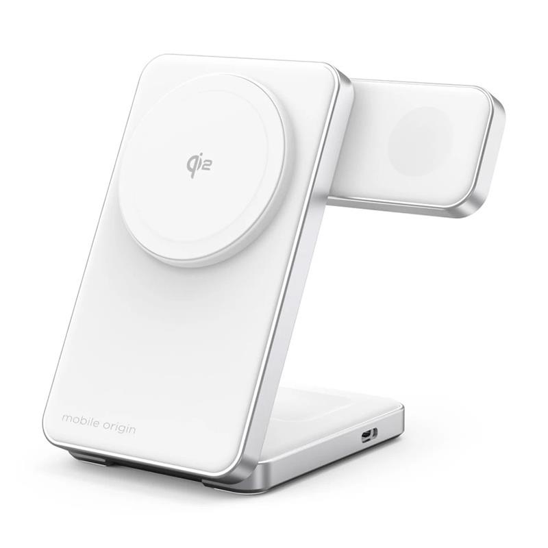 Mobile Origin Qi2 CompactStand 3-in-1 - White/Silver CMSTQ2-31-WHT