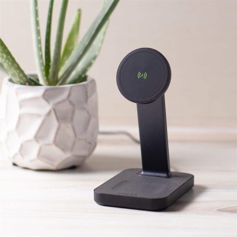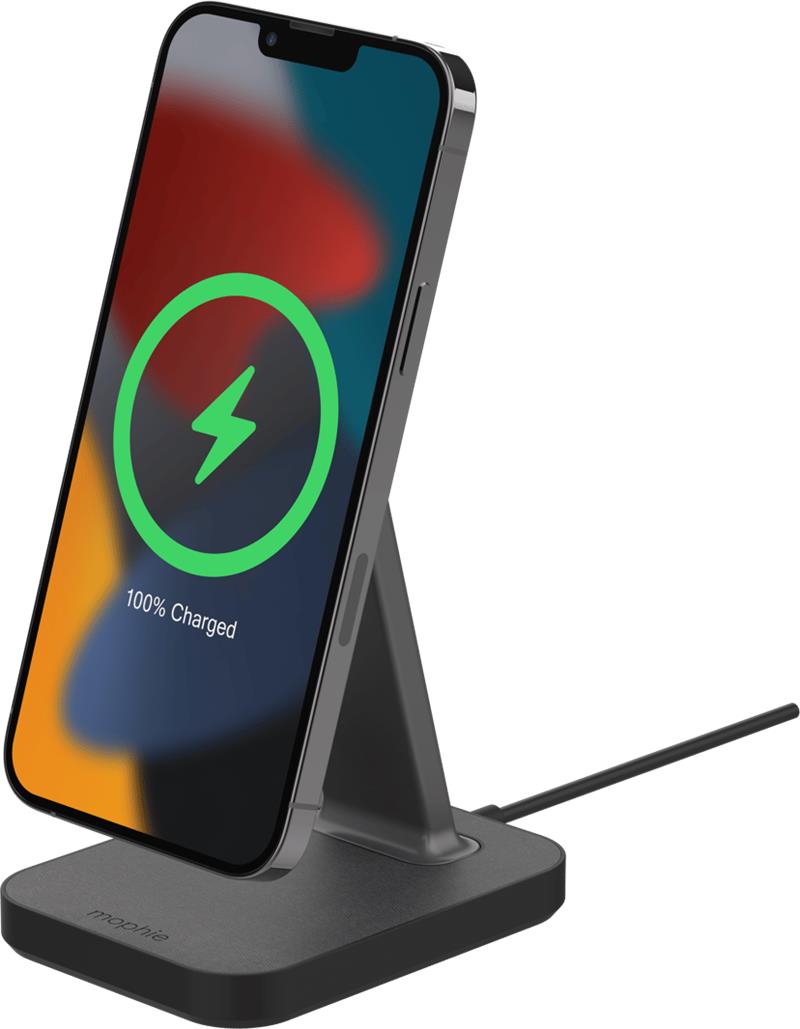 Bezdrôtový nabíjací stojan s nabíjacou podložkou Mophie Snap+ je kompatibilný s MagSafe, zariadenia s touto technológiou tak k stojanu perfektne priľnú a budú efektívne nabíjané.