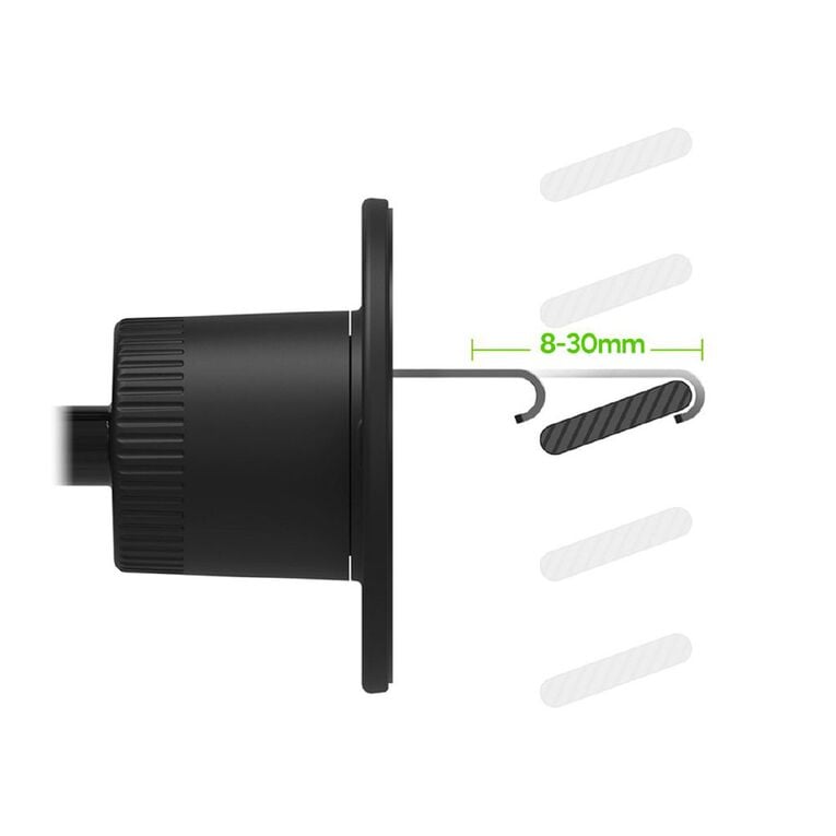 Držiak s pohyblivým ramenom umožňuje kompatibilitu s väčšinou ventilácií v automobiloch a je možné ho nainštalovať ihneď po vybalení. Uchytenie na ventiláciu aplikujete ľahko pomocou háčika.