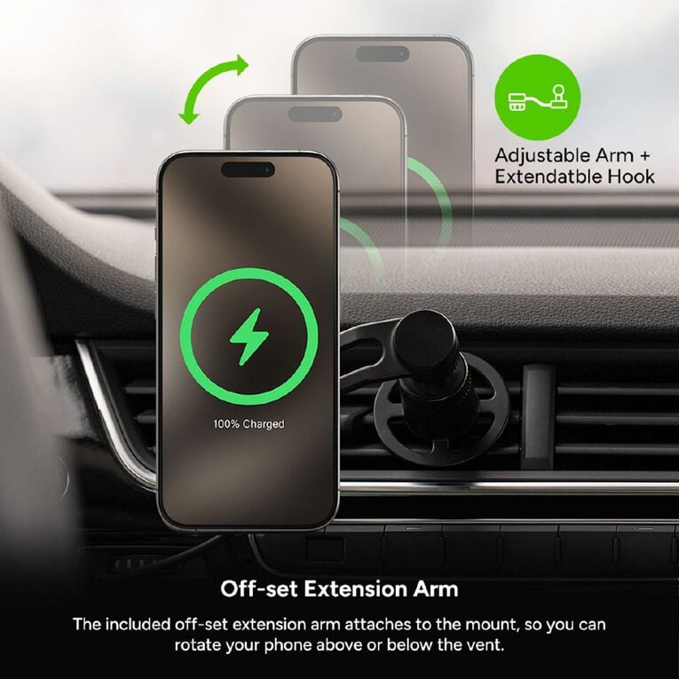 Magnetický držiak do auta pre bezdrôtové nabíjanie zariadení s podporou Qi. Kompatibilný s Qi ZAGG Mophie Snap+ s technológiou Qi zaistí dokonalé prichytenie a zarovnanie telefónu na nabíjaciu plochu do dokonalého uhla. Tím zaistí najlepšiu možnú napáj...